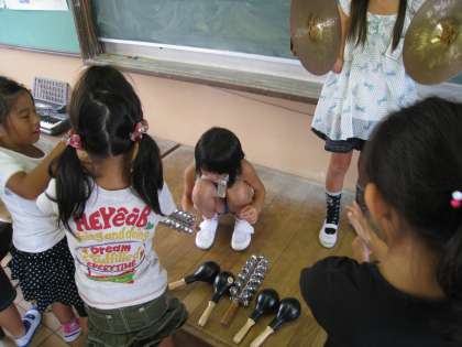 いろいろな楽器に触れて,お気に入りの音を見つけ出すことができたようです。
