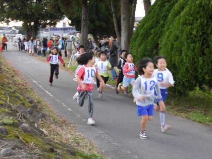 学年ごとにそれぞれスタートしました。1年生,2年生のスタート様子です。ものすごく勢いのあるスタートダッシュでした。1・2年生は約2.4キロメートルを走りました。