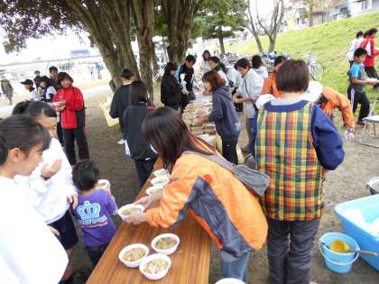 最後には会場に来たみんなで,豚汁とかやくご飯をいただきました。とてもおいしくあたたまることができました。いろいろとお世話になりありがとうございました。