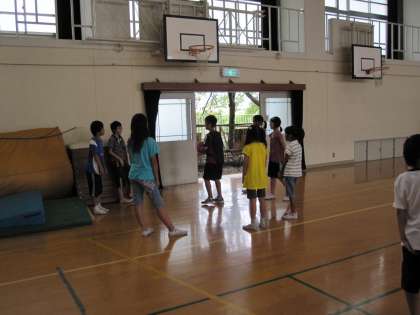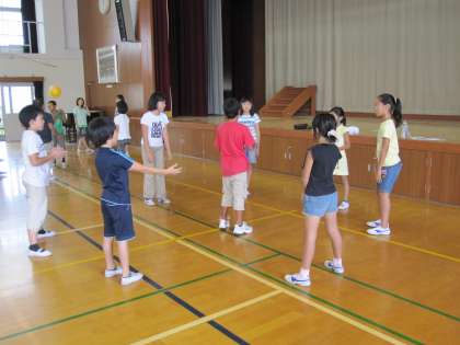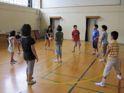 ボールが渡され「水」と言われれば,水の中にすむ生き物を言うゲームで,