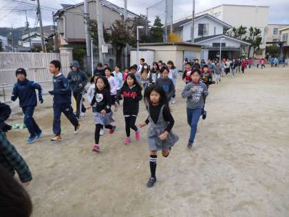 なお,当日登校しても体調が悪く持久走大会に参加できない児童は,学校に残って自習する体制をとっています。学校に残って自習するか,現地にてあたたかい服装で応援するかを,連絡帳などで知らせていただきますようによろしくお願い致します。