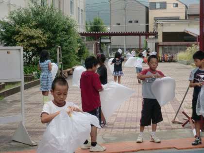 理科で空気を袋に閉じ込めて,
