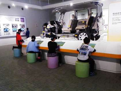 車作りの体験コーナーです。車のデザインや設計を疑似体験したり、エンジンの仕組を学ぶことのできるコーナーです。