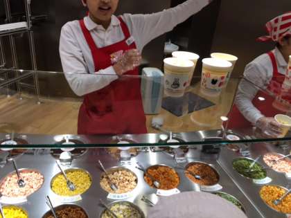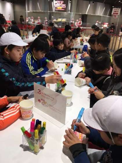 カップに絵を描きます。季節に合わせてクリスマスツリーやサンタクロースの絵を描いている子もいました。その後はスープの味や具を選んで、世界にひとつだけのオリジナルヌードルの出来上がりです!