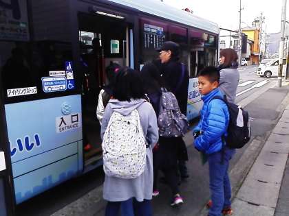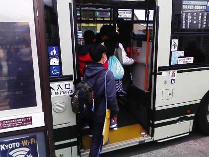 6年生は,市バスと地下鉄の一日乗車券を使って,グループごとに市内を巡ります。どのグループも,長福寺道のバス停から出発します。全ての班がバスに乗りました。計画通りに活動できるよう,グループで協力して一日を過ごしてほしいです。そして,京都の良さをそれぞれの訪れた地で感じてきてほしいです。