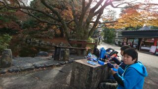 円山公園内のロケーションのよいところで、美味しいお弁当を食べて、元気回復です。早い班は、次の目的地へ出発しました。