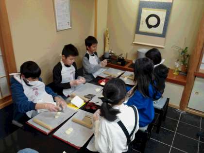 八ッ橋の手作り体験をしています。体験したことをガイドブックにまとめていきます。
