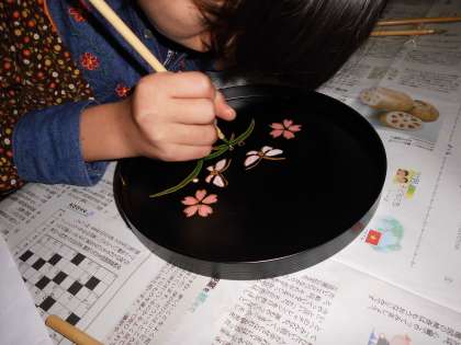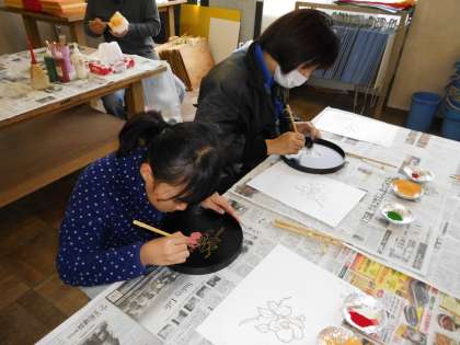 輪郭が乾いたら、絵付けをします。完成まで、あと一息。