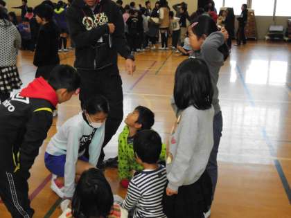 昼休みのなかよし遊びの相談もグループごとにしました。上級生に甘える下級生たち。たてわりグループの仲もだいぶ深まってきているようです。