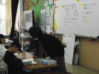 支部の学校の先生方に集まってきていただき,4組で授業研究会が開かれました。算数の「がいすう」についての学習です。普段とは違う雰囲気に少し緊張ぎみでしたが,先生と一緒に考えたり,クイズに挑戦したりしました。頑張る姿を見ていただくことができて,よかたっですね。