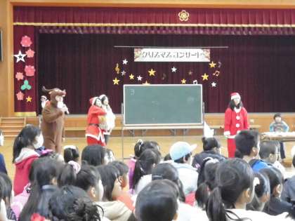 最後はプレゼント渡しです。梅津北小学校にも一足早くツインズサンタがやってきて,みんなに嬉しいプレゼントを届けてくれました。