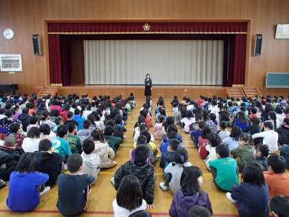 はじめの会では校長先生から,久々に集う子どもたちを励まして下さいます。