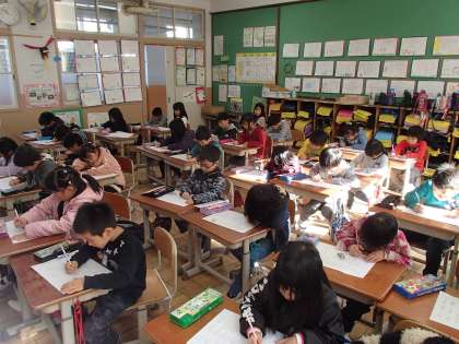 教室では冬の思い出を聞いたり,早速テストに取り組んだりしました。