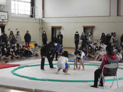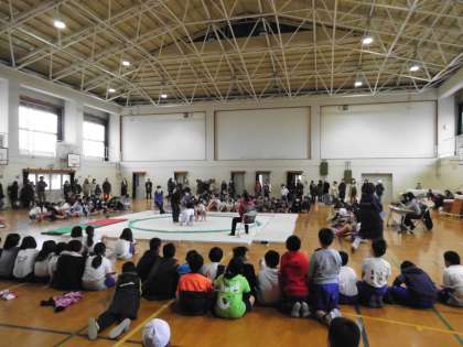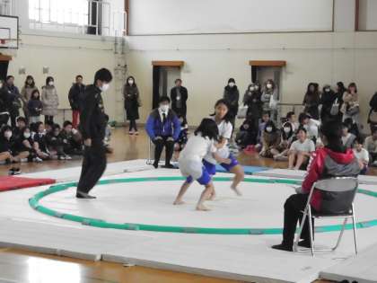 5・6年生は相撲大会を開催しました。多くの方々に見守られる中,熱い取組が続いています。今年度の横綱は誰になるのでしょうか。