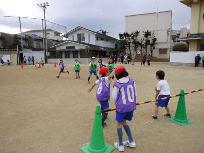 自由参観、2年生の5・6時間目は、体育。学年合同で、元気にサッカーを行いました。どちらのクラスも健闘して、結果は五分五分でした。