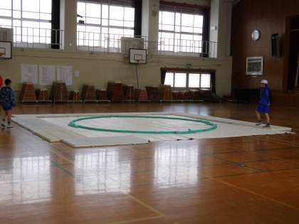 先日の相撲大会団体戦の残りの取組を,本日1月16日(月)の13時15分頃から体育館で開催致します。お時間がありましたら観戦していただき,あたたかい声援をおくっていただきますようによろしくお願い致します。