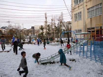 昼休みはちびっこ広場で雪遊び!