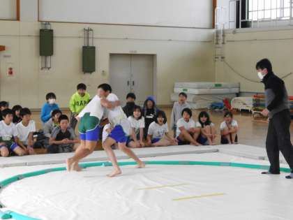校区にある梅宮大社には土俵があり,相撲大会も盛んに行われています。また嵐山で開かれる相撲大会に参加している人もいて,相撲に親しむ機会は結構たくさんあります。今回,4・5・6年生で相撲大会を行い,相撲に興味をもった人もいたのではないでしょうか。ぜひ,地域で行われる相撲大会にも参加してみてくださいね。