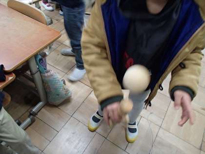 生活科「冬も元気に」では,こうした雪で十分に屋外で遊ぶことの出来ないときにも,室内でも遊べる昔ながらの遊びに取り組んでみました。メンコ,犬棒カルタ,コマ,お手玉,坊主めくり,けん玉などなど…。最近の子どもたちは携帯ゲーム機やスマートフォンで遊ぶのかと思いきや,結構達者にこなす子もいて,感心していました。