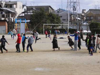 運動委員会で大なわ大会を企画してくれています。それに向けて各クラス練習し始めました。高学年は高速で跳ぶ人もいます。さすがです。低学年も自分たちで縄を回しながら跳んでいました。寒い毎日が続きますが,大なわで体を動かすようにしていきましょう。