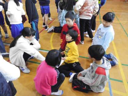 なかよし集会の最後は,昼休みのなかよし遊びの遊びを相談しました。6年生を中心に自分たちのグループは何をして遊ぶのか,そして,集合場所を決めていきます。高学年の周りに自然とみんなが集まり,とても打ち解けてきたなという感じです。