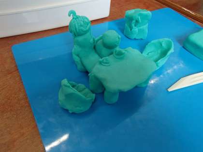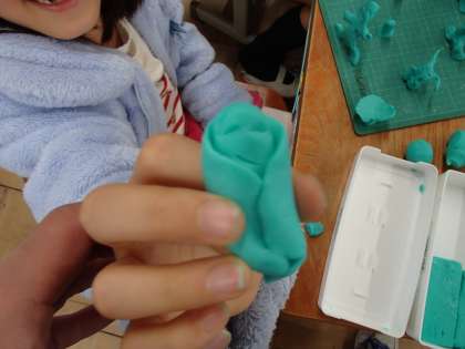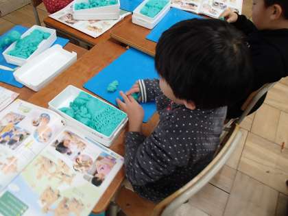 図画工作科で「いっしょにおさんぽ(立体)」に取り組みました。一緒に出掛けたい仲間や動物を粘土で作って,散歩に行くという題材です。