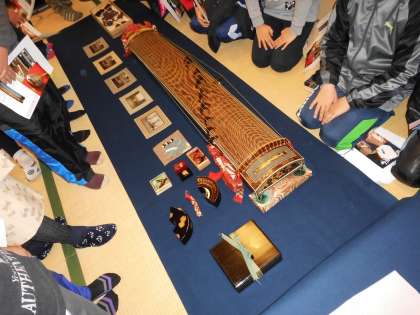 参考として、江戸時代の特別な琴を見せていただきました。今ではもう作る人もいない、高度な技術で作られています。当時でも大変高価なものだったそうです。