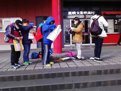 映画村到着。バスの遅延で予定より30分程遅くなりましたが、バス停におられた方に丁寧に教えてもらって助かったということでした。
