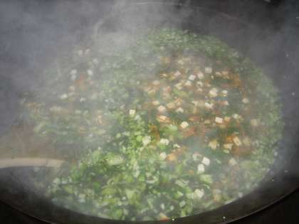 「肉みそいため」はしょう油で味つけした豚肉をにんにく・しょうがを炒めて香りのついた油で炒め、たけのこ・しいたけ・柔らかく茹でた大豆、ほうれん草を炒めて、赤みそ・コチュジャン・さとう・しょう油で味つけしました。甘辛でとてもごはんが進みました。