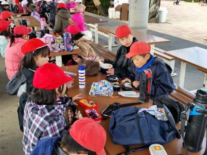 動物園に着いて、楽しい昼食です。お弁当,朝から用意していただきまして,ありがとうございます。みんなでおいしくいただいています。昼食後,動物園もまわるので、新しくなった動物園の園内をどうまわるかの相談もしています。