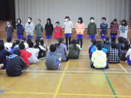 2月12日(日)に行われる大文字駅伝大会。各区間の選手発表がありました。発表された選手たちは,一人一人決意をみんなの前で発表し,みんなも選手たちにあたたかい拍手をおくりました。よろしければ,沿道でまたあたたかい声援をおくっていただけたらと思います。