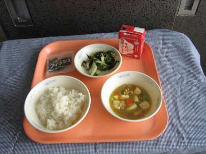 麦ごはん・牛乳・和風カレーどうふ・ほうれん草とはくさいのごま煮・じゃこ
