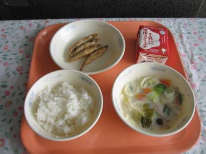 ごはん・牛乳・わかさぎのこはくあげ・豆乳鍋