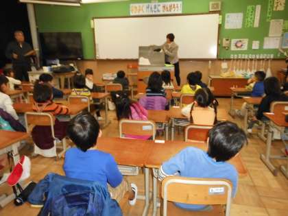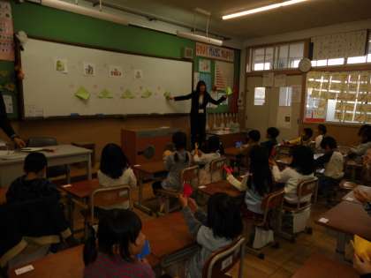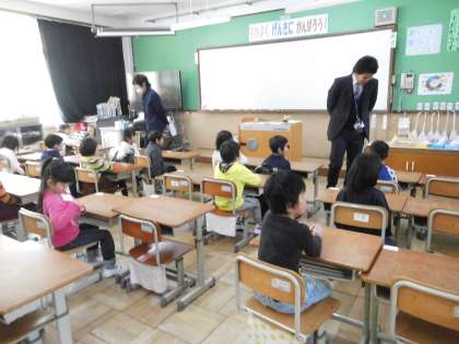 子どもたちは教室でお勉強です。絵本を読み聞かせてもらったり,手遊び歌を一緒に楽しんだりと,みんな楽しそうに活動していました。