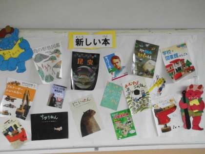 図書館前の掲示板に新しい本が紹介されています。最近はみんなどんな本に出合えているのでしょうか。読書100冊も目指して,また図書館に行っていろいろな本を読んでいきたいですね。