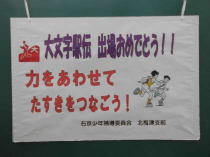 2月12日(日)の大文字駅伝大会。10:45衣笠小学校前をスタートし,8名の選手がタスキをつなぎます。梅津北小学校のナンバーは【30】です。子どもたちが力を出し切れるように,あたたかいご声援をよろしくお願い致します。