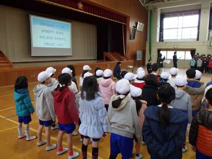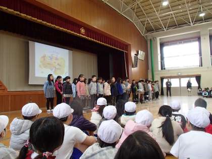 全校合唱は「Tomorrow」。6年生の巣立ちの気持ちをみんな一緒に歌いました。とてもいい歌です。心を一つに歌えるといいですね。