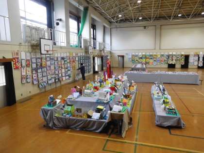 作品展では,児童の作品だけでなく地域の方々の作品も出品させていただいています。また,梅津中学校や梅津小学校,聾学校や総合支援学校,京都朝鮮第二初級学校の友だちの作品も展示されています。