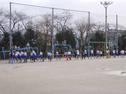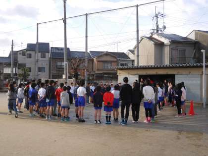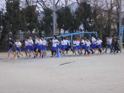 大文字駅伝に向けての取組も,6年生から引き継ぎました。6年生の人たちと一緒に練習をスタートさせました。6年生たちに背中を押してもらいながら,初めての練習を頑張りました。これからも継続して頑張っていきたいですね。