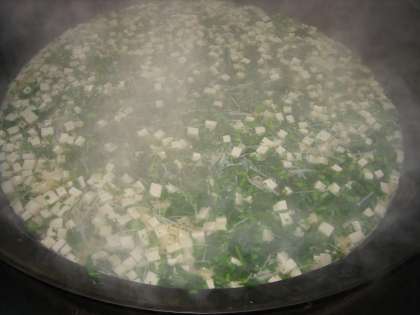 「花菜のすまし汁」は京野菜の「花菜」を使用した汁ものです。花菜のほろ苦さをみつけ、早春の味が楽しめました。だしは昆布とかつおぶしでとりました。