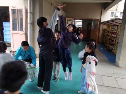 渡り廊下で,6年生のお兄さんに遊んでもらっている1年生の女の子を見かけました。ただ,手を上に出して,それに向かってジャンプしてタッチしようとするだけなのですが,とっても楽しそうです。