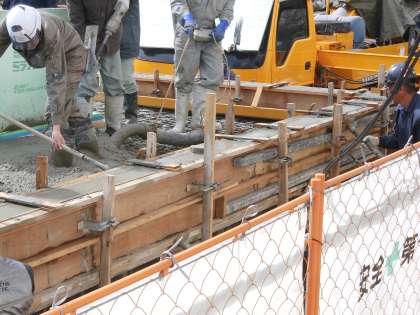 プールサイドに生コンが流され,きれいに整えられていきました。校舎2・3階の窓からながめていると,きれいに出来上がっていく様子がよくわかります。