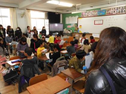 生活科の学習で、これまでの自分自身の成長を振り返りながらまとめたことを、友だちと発表し合いました。