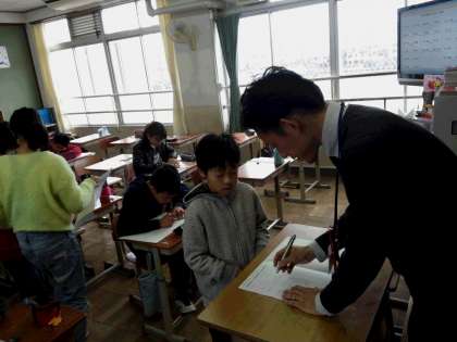 まずは体験授業。数学の学習の様子です。何本の対角線が引けるかを考えています。