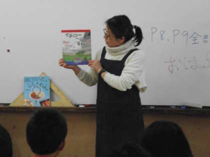 図書ボランティア「ありすのいえ」の方々による朝の読み聞かせ。今日は5年生と4年生の教室で行われました。音楽が流れる中,みんなしっとりと本の世界に浸っていました。