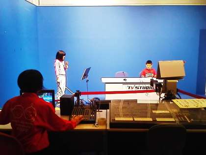 キッズプラザ大阪にいます。ニュースキャスター体験やお天気キャスター体験,声優体験をしました。初見原稿でしたが,上手に読むことができました。声優体験の時は,役割のキャラクターに似合った台詞の言い回しもできていました。他の幼稚園団体の園児さんたちが,「上手やなぁ。」とうらやましそうに見てくれていました。