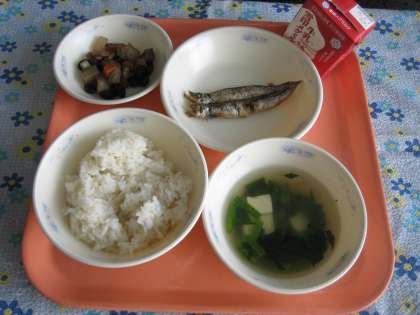 麦ごはん・牛乳・ししゃものからあげ・黒豆の五目煮・すまし汁