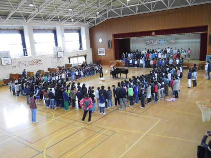 最後に、全校合唱「トゥモロウ」を歌いました。