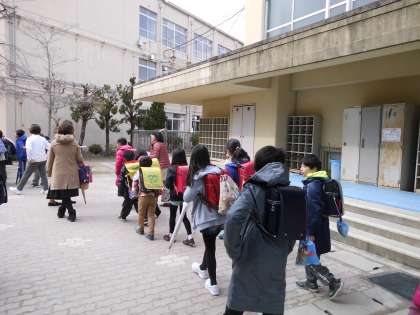 町別集会後は,地域委員の方々にも付き添っていただき,町別グループで集団下校をしました。今回来ていただいた地域委員の方々は平成29年度お世話になります。今後ともよろしくお願い致します。
