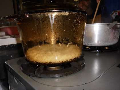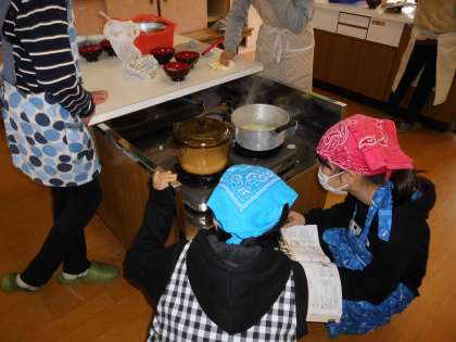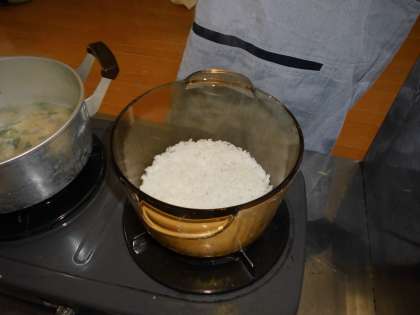 ご飯は、鍋で炊きます。どの班も、焦がすことなく上手に炊けていました。